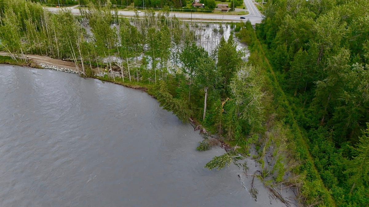 Crews are installing large rock to repair the sections and halt the flow of water towards the highway.