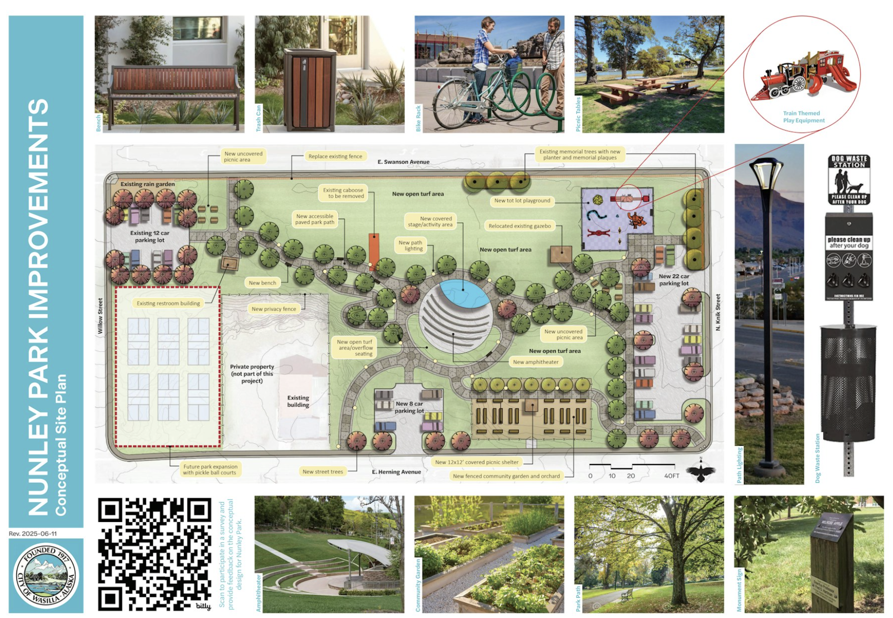 - Wasilla city officials are seeking public feedback on a proposed redesign of Nunley Park. The plan includes updated playgrounds, picnic areas, an amphitheater, accessible paths and new parking — along with the controversial removal of the park’s iconic red caboose due to safety concerns.