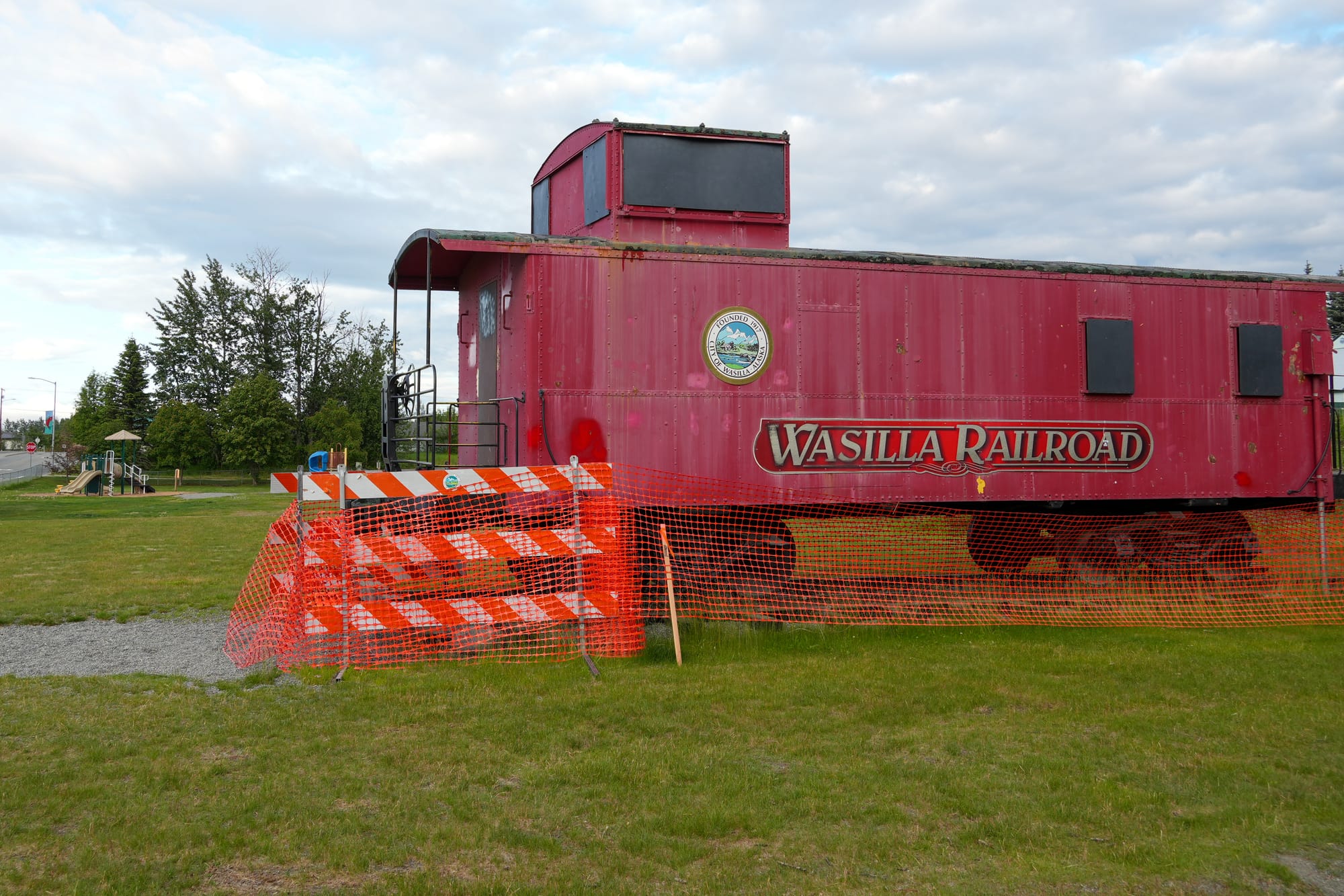 The plan also recommends fully removing the park’s large red “Wasilla Railroad” caboose, which city officials say contains lead paint and asbestos and poses a safety risk.